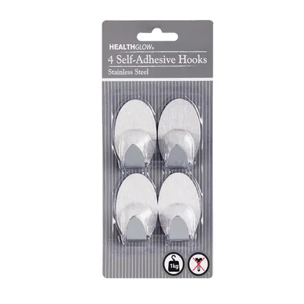 HEALTHGLOW Self-Adhesive Stainless Steel Hooks – 4-Piece Set