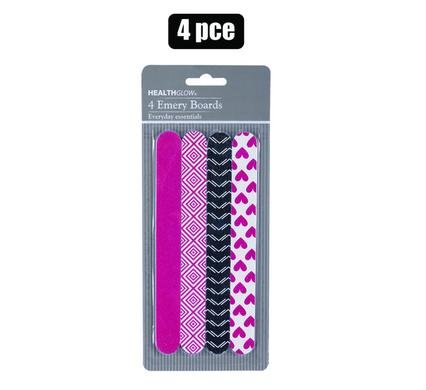 Shape and smooth your nails effortlessly with the Nail file emery 4 Piece h/glow set. Perfect for both natural and artificial nails, these emery boards provide a gentle yet effective filing experience, making them an essential addition to any manicure kit.